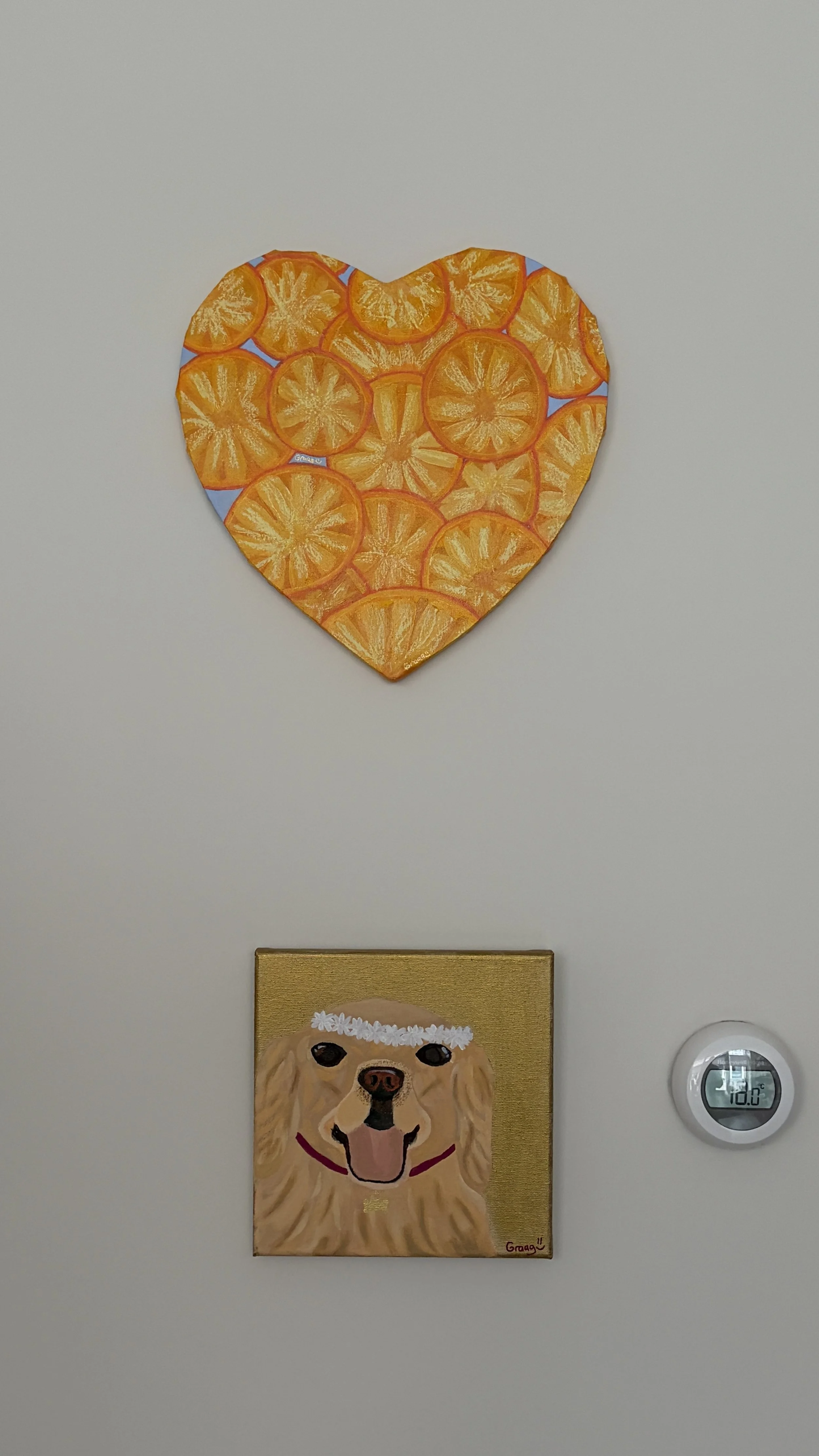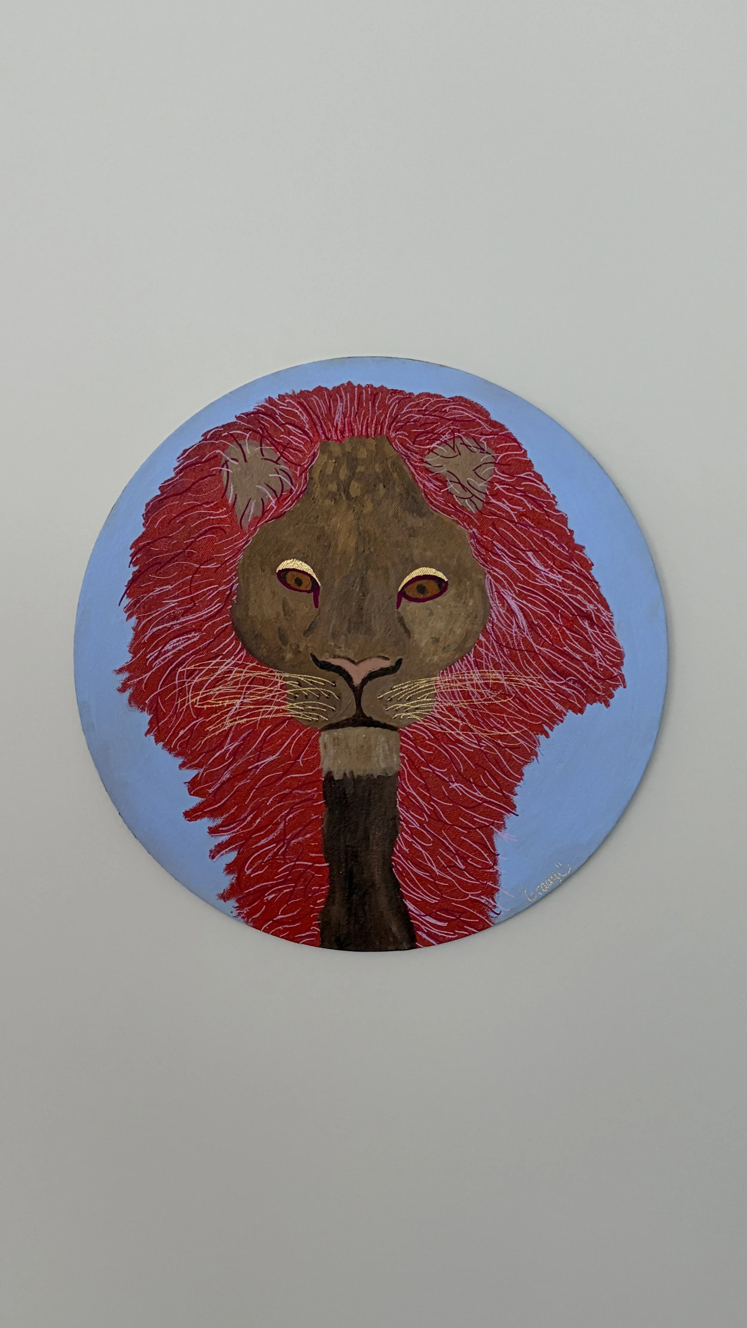 Goldie 20 × 20 cm acryl, oliepastel en acrylstiften. Gouden achtergrond. € 30
